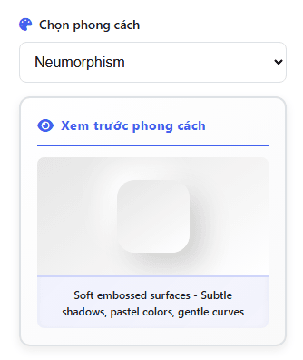 “Hãy tạo thêm phần preview để khi người dùng chọn ở dropdown thì hình ảnh khối tương tự để review theo phong cách đó sẽ xuất hiện”